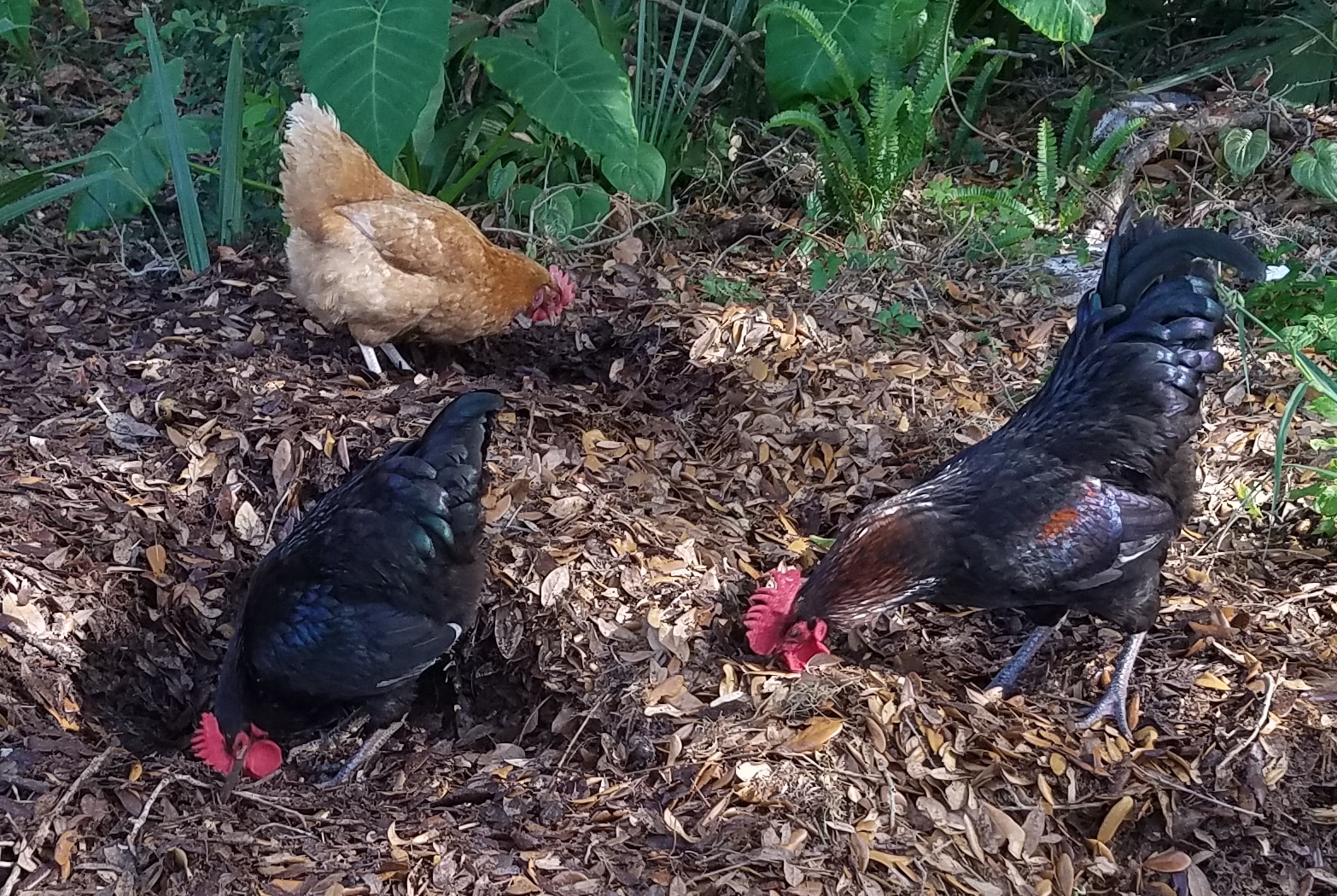 Anyway, I worked for 12 hours, then came home and let my chickens out. Here is a picture of my chickens: