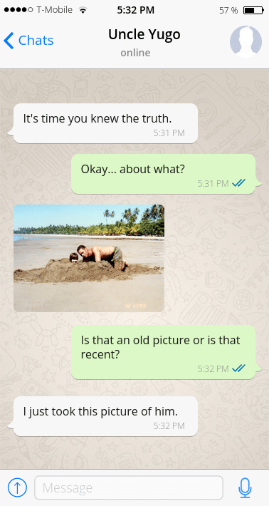 Anyway, the picture he sent me wasn’t this picture. It was like the same background, but it was a close up of his bust area and he was closer to the palm trees and he was just looking into the camera with the sun in his eyes, but he was kind of in the shade. I don’t really know, it’s weird now that I’m analyzing it, but it wasn’t weird at the time. He also hadn’t aged which I didn’t question either.